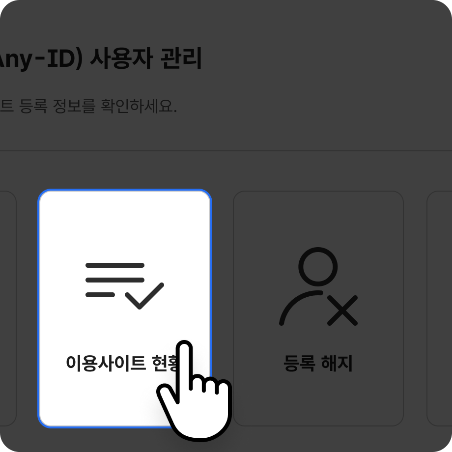 모바일 신분증, 간편인증, 공동인증서, 금융인증서 등 다양한 인증수단 중 원하는 방식으로 인증 후 정부 통합인증 사용자 등록 해지를 진행 하실 수 있습니다.